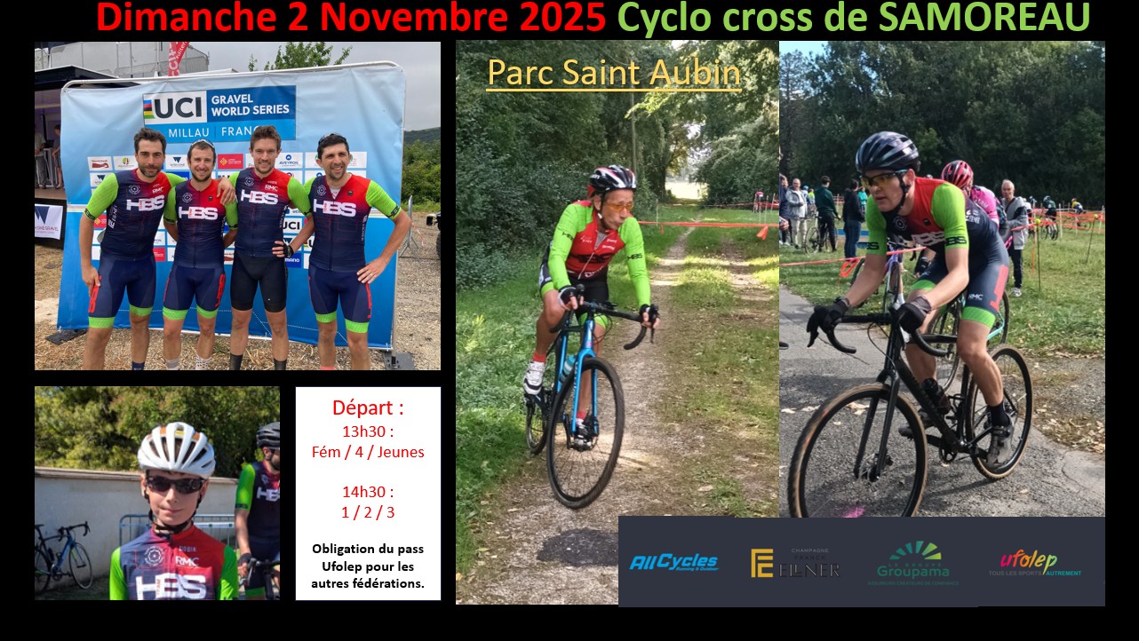 Le 2 novembre à Samoreau, plongez dans l’ambiance unique du cyclo-cross UFOLEP : efforts, relances, et esprit club au cœur du Parc Saint-Aubin. Venez vibrer avec nous ! 🚴♂️